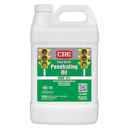 - PRODUCT DESCRIPTION: CRC Food Grade Penetrating Oil is available in a 1 gallon bottle. It is NSF H1 registered for incidental food contact and meets USDA, NSF, and FDA standards.