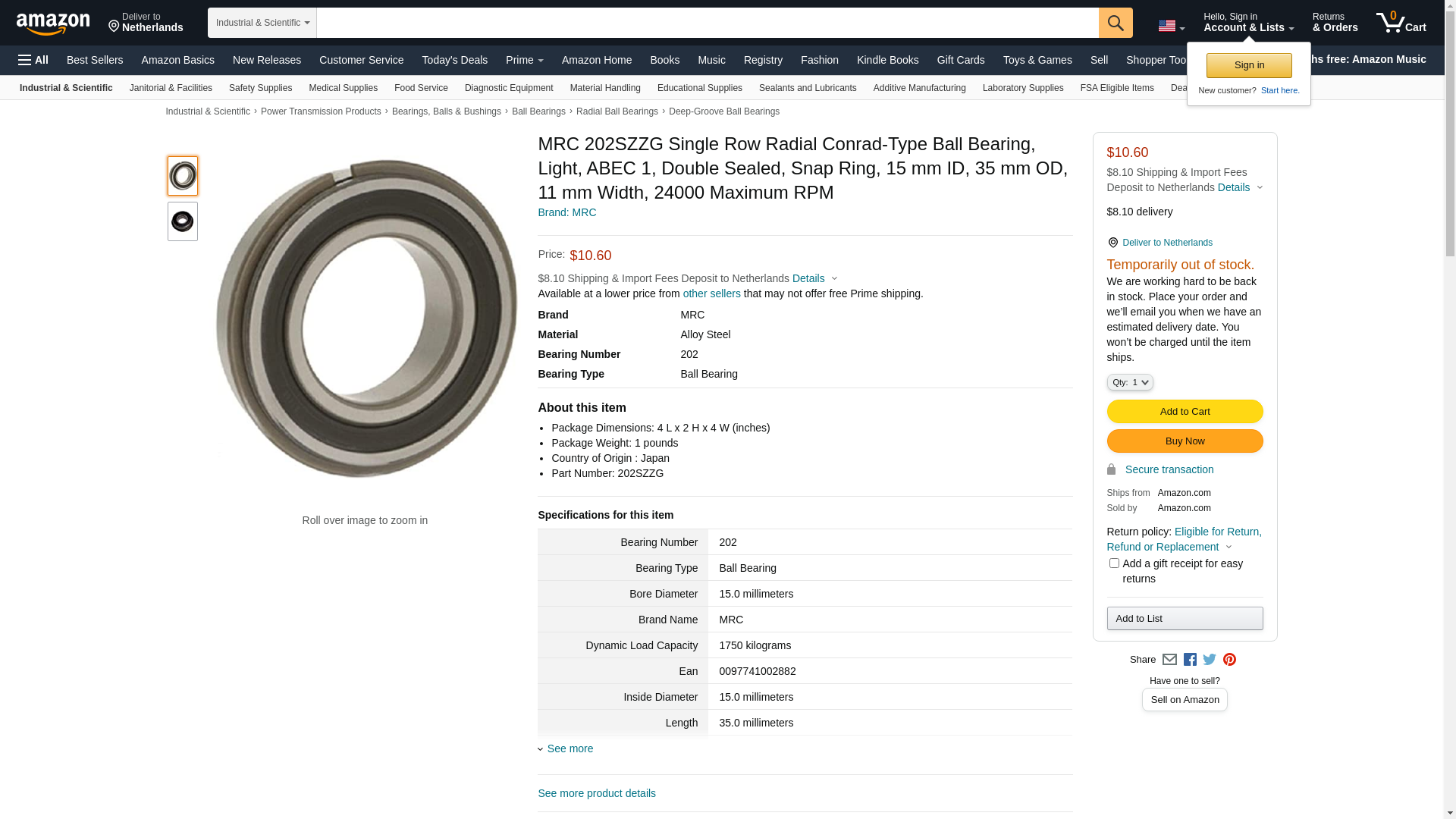 MRC 202SZZG Single Row Radial Conrad-Type Ball Bearing, Light, ABEC 1, Double Sealed, Snap Ring, 15 mm ID, 35 mm OD, 11 mm Width, 24000 Maximum rpm