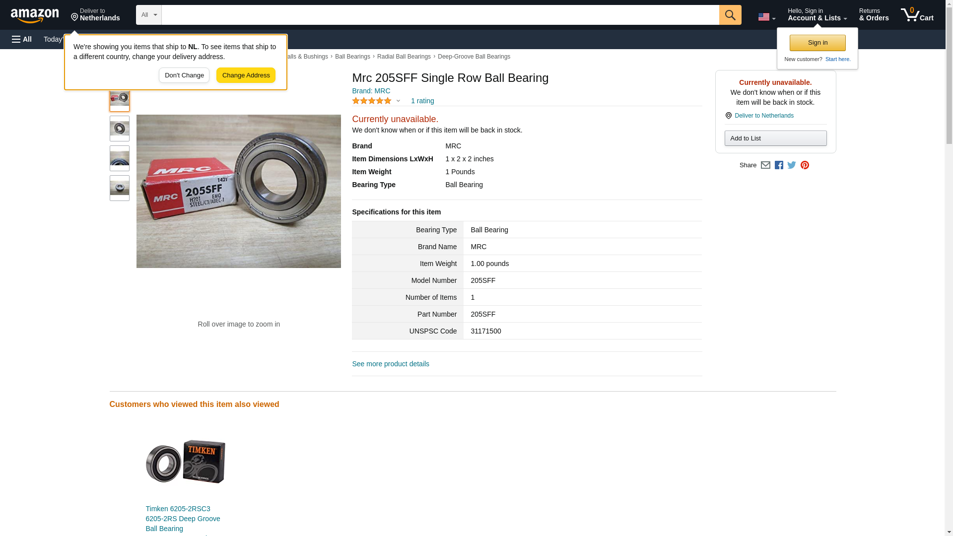 Mrc 205SFF Single Row Ball Bearing