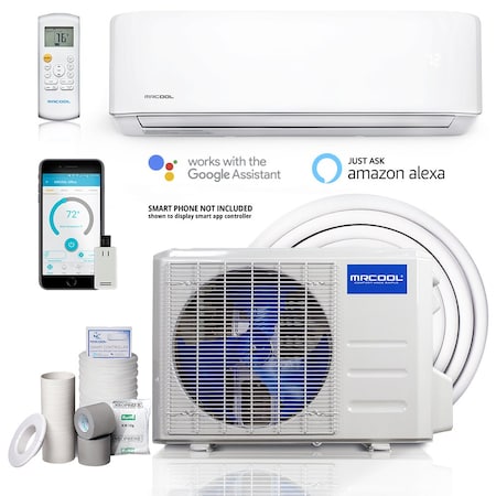 The newly designed MRCOOL 4th generation Advantage Series 9,000 BTU ductless mini split air conditioner has improved efficiency ratings up to 21.5 SEER and is competitively priced. It provides maximum comfort and is designed to heat and cool 375 square feet without requiring any ductwork. This system also comes with a