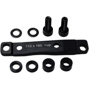 Flat mount disc brake adapters designed to accommodate different configurations of the Baxter suspension fork.12 x 100 mm Axle, 160 mm Rotor
