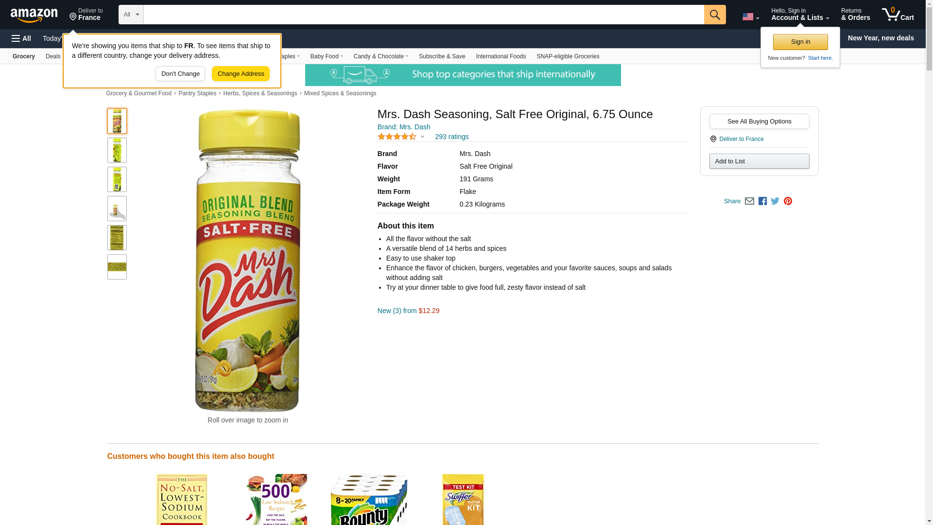 Mrs. Dash Seasoning, Salt Free Original, 6.75 Ounce