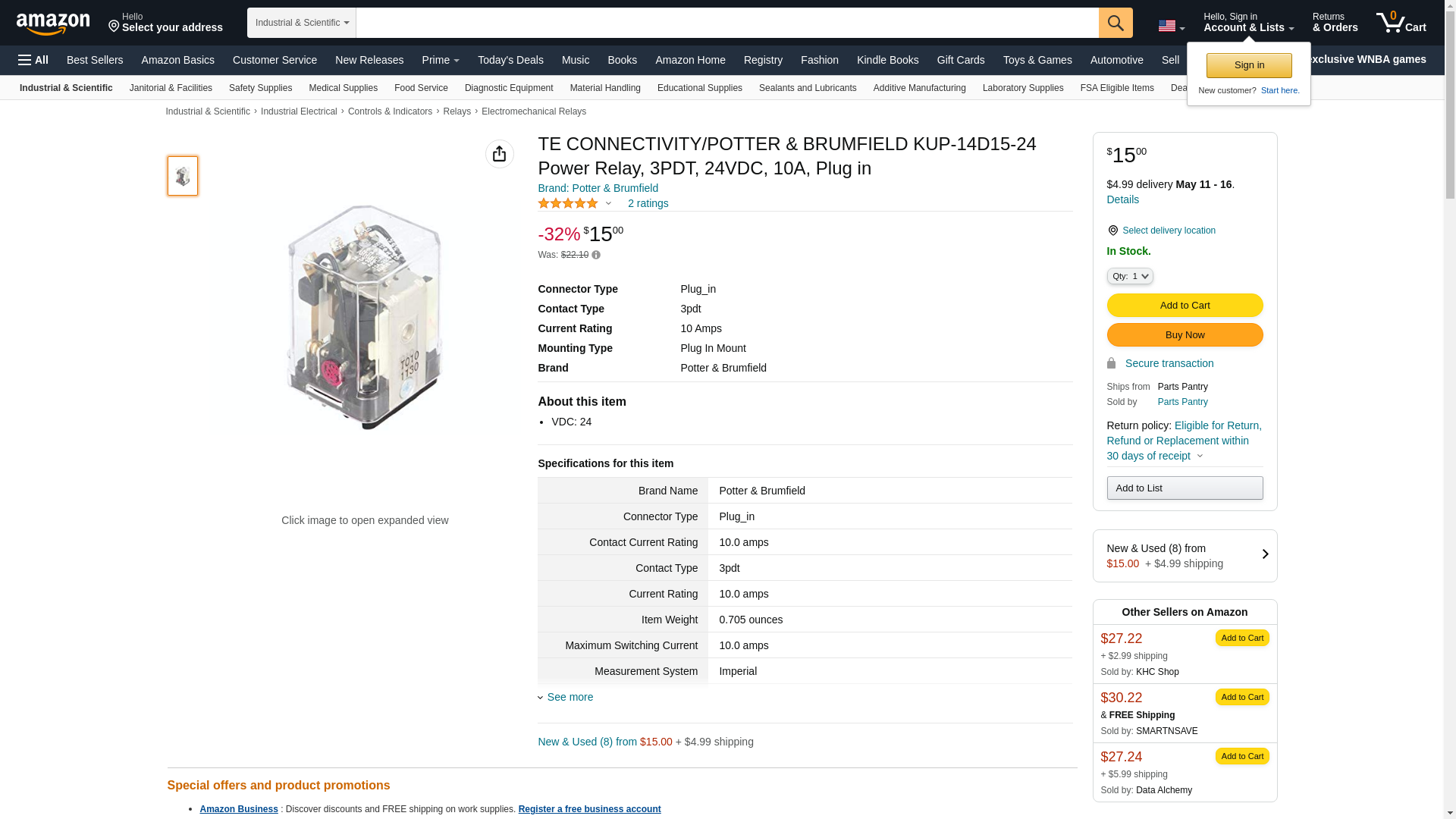 | Waldom | TE CONNECTIVITY POTTER-BRUMFIELD KUP-14D15-24 | 4 | 466 | 1 | 4 @ $16.07, 19 @ $14.01, 40 @ $13.47, 81 @ $13.22, 150 @ $12.97, 250 @ $12.29 |