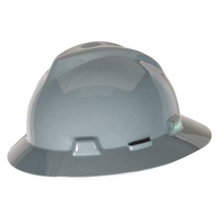 MSA 10019548 V-Gard Full-Brim Hard Hat With Fas-Trac III Ratchet Suspension | Polyethylene Shell, Superior Impact Protection, Self Adjusting Crown Straps - Standard Size in Silver