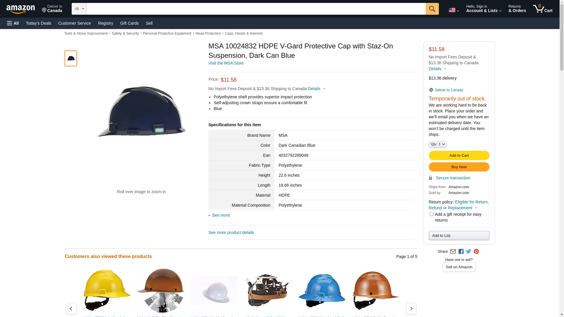 CAP, V-GD, W/STAZ-ON SUSP DK CAN BLUE, MSA-10024832 The MSA V-Gard Helmet, with its distinctive trademark “V” design, is a world recognized br