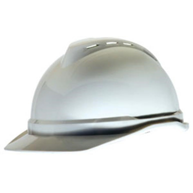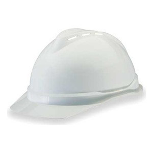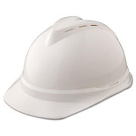 MSA V-Gard 500 White Vented Hard Hat MSA's V-Gard 500 hard hat is made from lightweight polyethylene. The 4 point suspension and ratchet adjustment offer added comfort. This vented protective cap features a Glaregard surface underbrim to reduce reflective glare and an extended rain trough around the brim to keep you dry. Lateral contours above the ears make it quick and easy to attach hearing protection. Specifications: Color: White Vented Suspension: 4 Point Fas-Trac Adjusting Method: Ratchet Material: Polyethylene