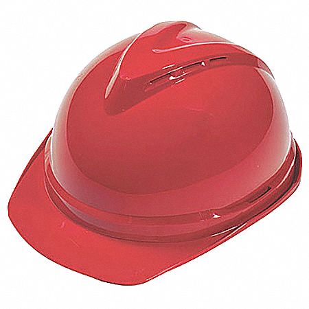 - <b>ANSI Impact Type</b>: 1 <b>Item</b>: Hard Hat <b>Venting</b>: Yes <b>Hard Hat ANSI Class</b>: C <b>Suspension Adjustment Type</b>: Ratchet <b>Head Protection Material</b>: Polyethylene <b>Shell Material</b>: Polyethylene <b>Head Protection Style</b>: Front Brim <b>Hard Hat Sub-Category</b>: Hard Hats Without Graphics <b>Color</b>: Red <b>Head Protection Venting</b>: Yes <b>Accessory Slots</b>: Yes <b>ANSI Classification</b>: Type 1, Class C