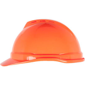 MSA Hard Hat, FrtBrim, Slttd, 6Rtcht, hi-viz Orange, Standard
