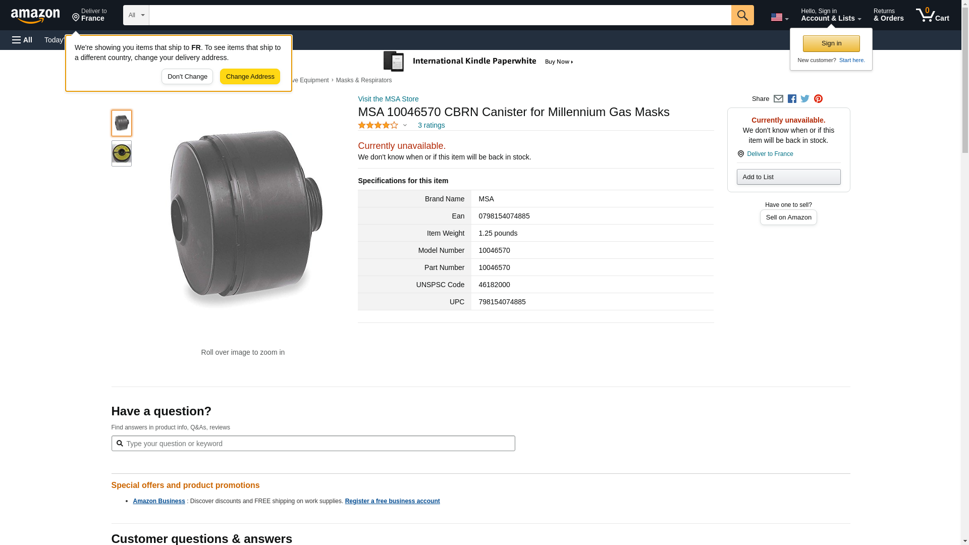 MSA 10046570 CANISTER, CBRN, PKG, THREADED