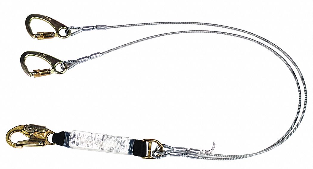 MSA 10047087 FP5K Energy Absorbing Twin-Leg Cable Tie-Back Lanyard, 36C Harness Connection, FP5K Anchorage Connection, CSA Z259.11 Standard