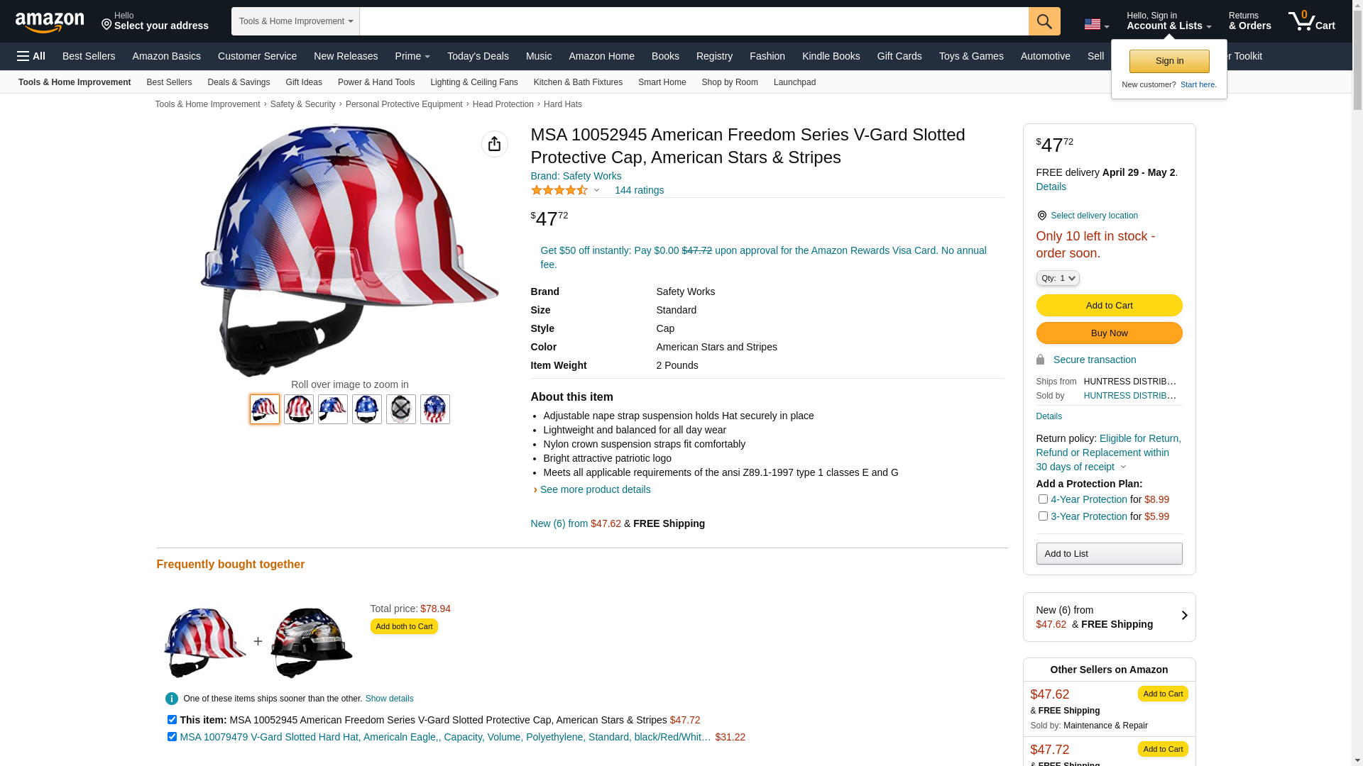 MSA 10052945 American Freedom Series V-Gard Slotted Protective Cap, American Stars & Stripes