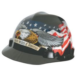 MSA V-Gard Cap Style Patriotic Hard Hat with American Flag and 2 Eagles- One Touch Suspension