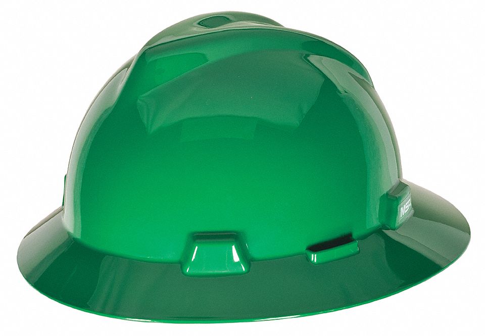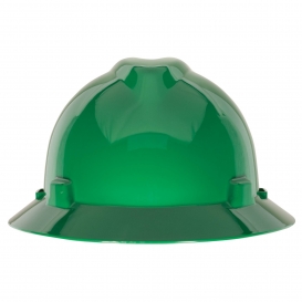 MSA 10058323 V-Gard Full-Brim Hard Hat with 1-Touch Suspension | Polyethylene Shell, Superior Impact Protection, Self Adjusting Crown Straps - Standard Size in Green