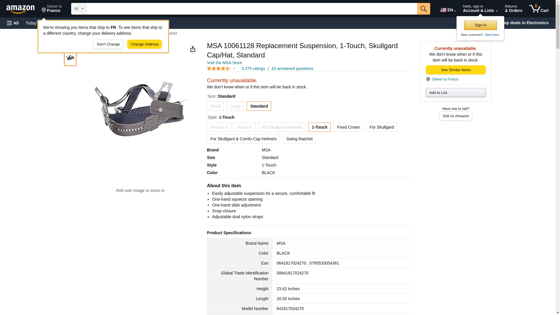 MSA 10061128 Replacement Suspension, 1-Touch, Skullgard Cap/Hat, Standard