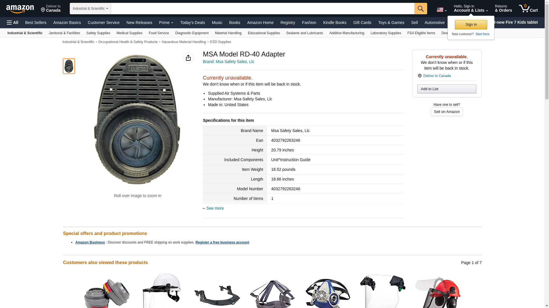 | Safety Equipment Store | MSA-10065330 | 1 | -2 | 1 | 1 @ $99.69 |
