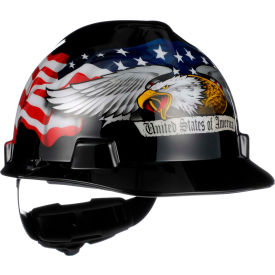 MSA 10079479 V-Gard Slotted Hard Hat, Americaln Eagle,, Capacity, Volume, Polyethylene, Standard, black/Red/White/Blue
