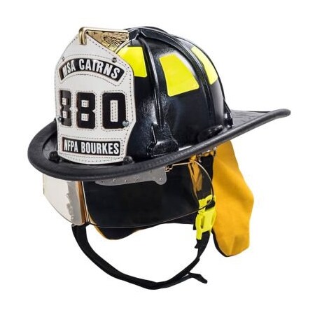MSA 10085967 CairnsFire Helmet with Bourkes and 6" Carved Brass Eagle, Black