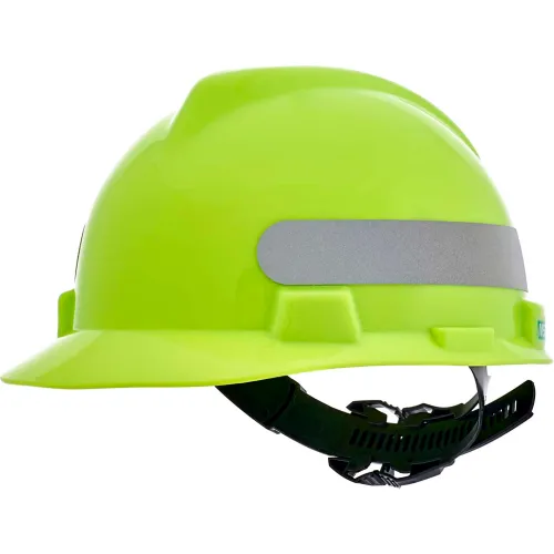 MSA 10102196 V-Gard Slotted Protective Cap with 1-Touch Suspension, Standard, Hi-Viz Yellow/Green with Silver Stripe