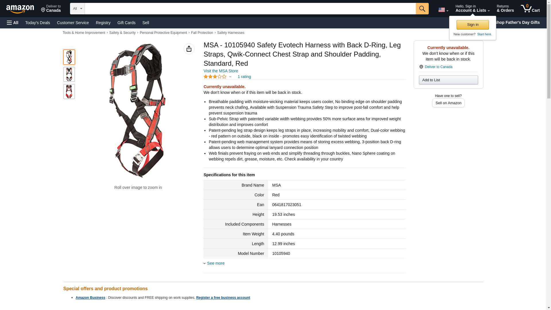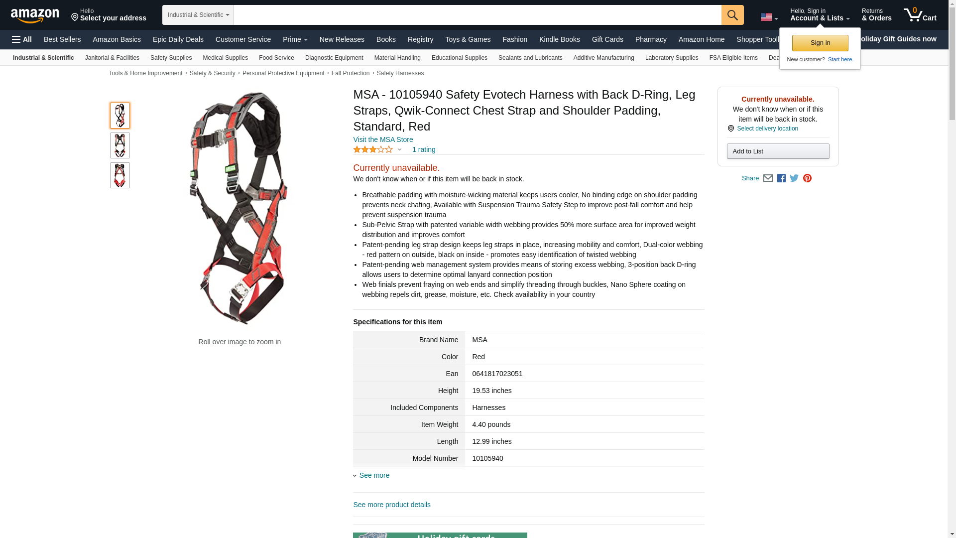 | Safety Equipment Store | MSA-10105940 | 1 | 1 | ||