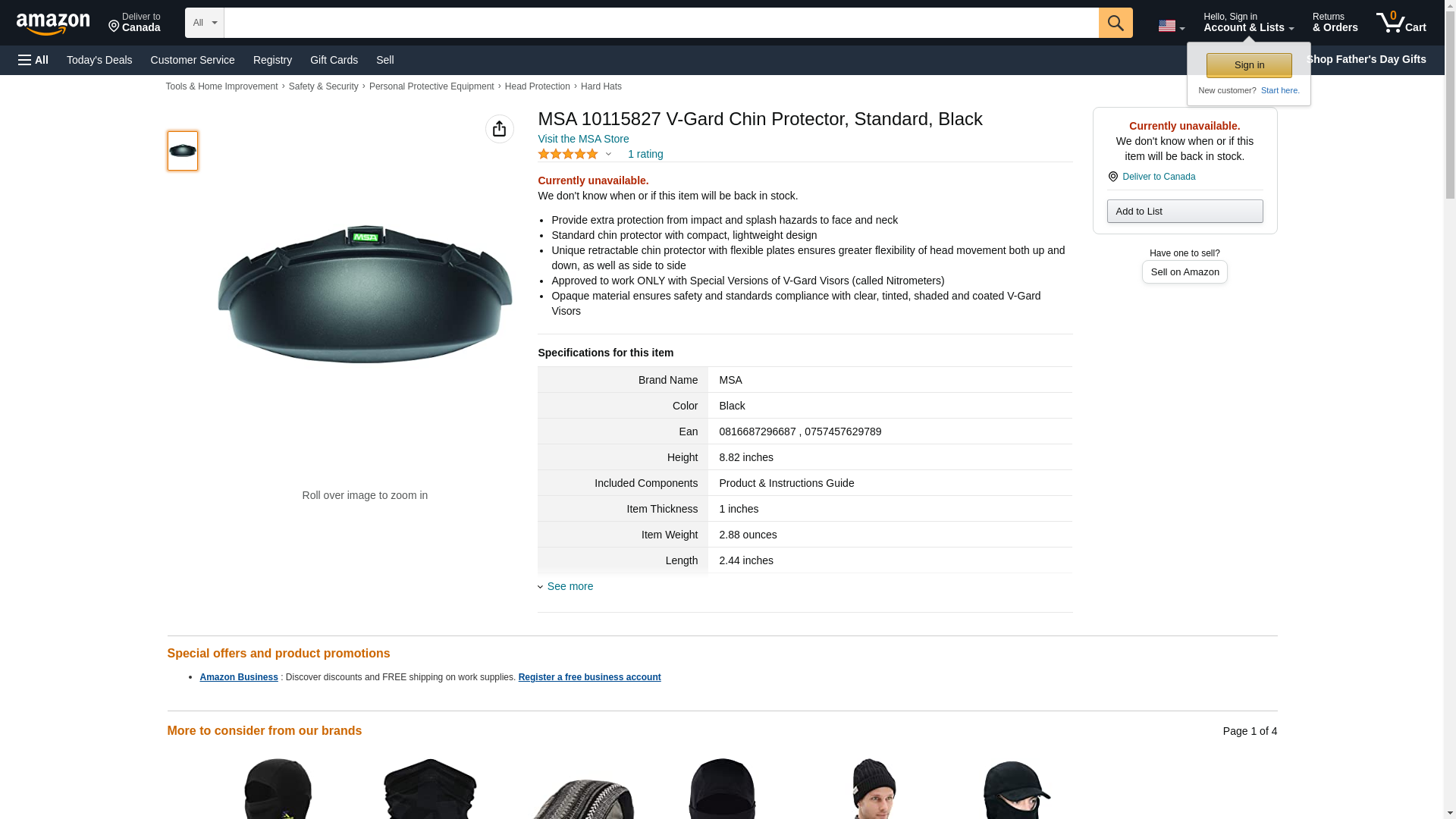 MSA 10115827 V-Gard Chin Protector, Standard, Black