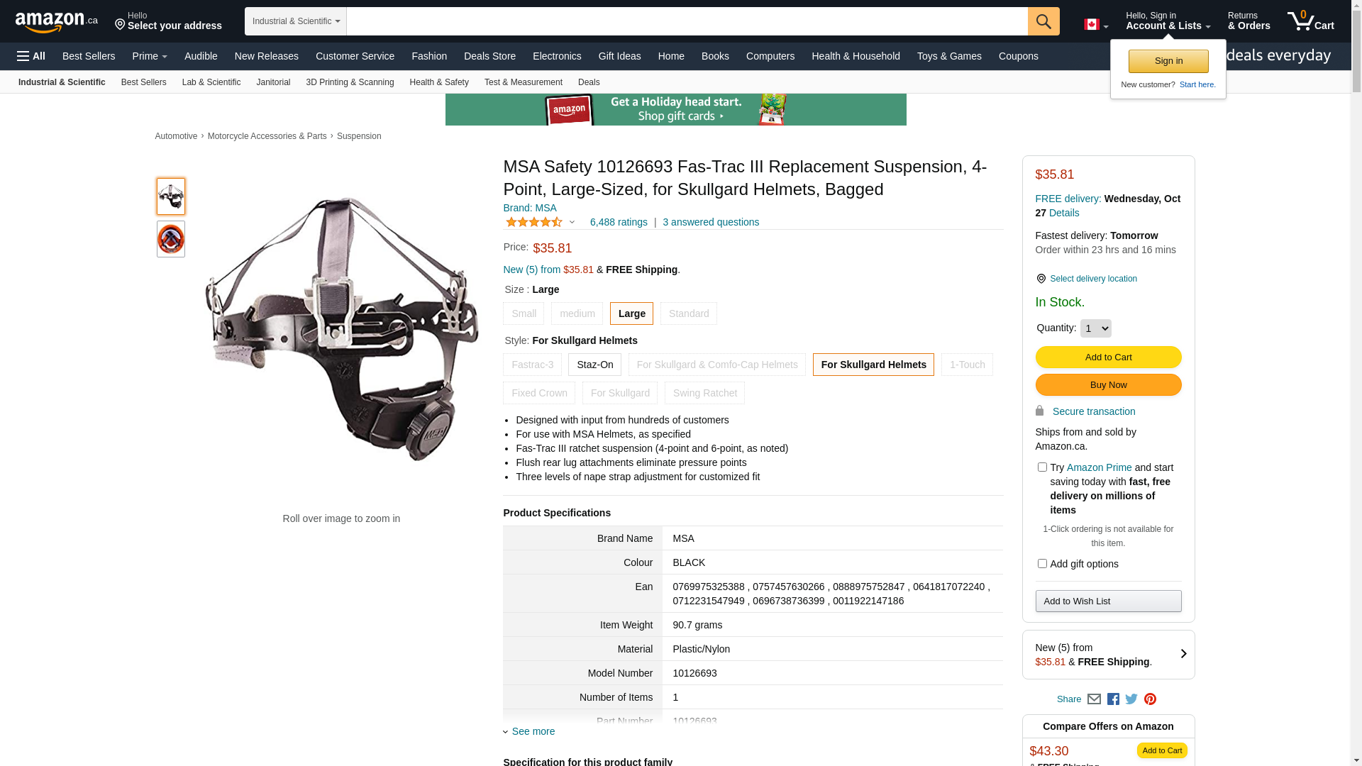| Feature | For use with LARGE MSA Helmets (Hats and Caps) ONLY. Not appropriate for Standard or Small Helmets |
