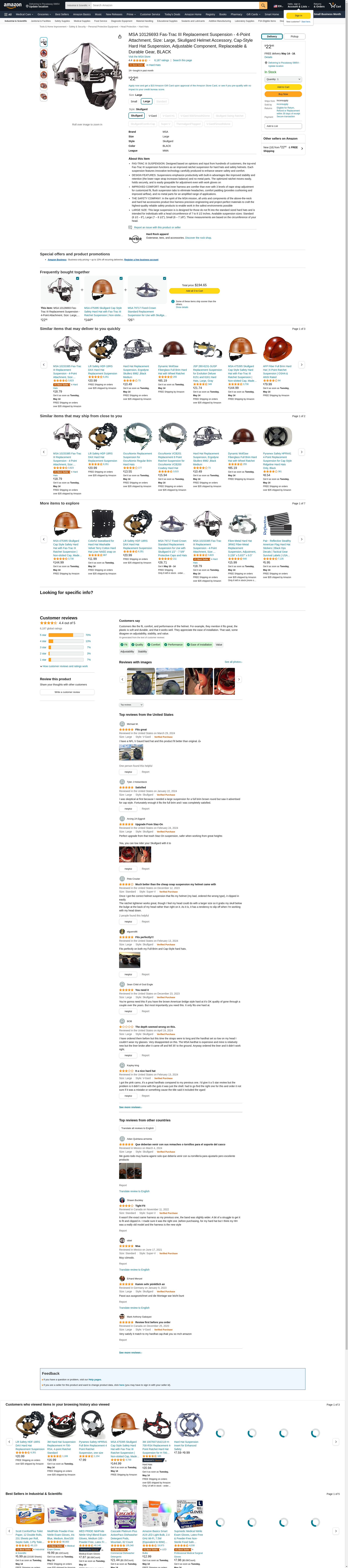 MSA 10126693 Fas-Trac III Replacement Suspension - 4-Point Attachment, Size: Large, Skullgard Helmet Accessory, Cap-Style Hard Hat Suspension, Adjustable Component, Replaceable & Durable Gear, BLACK