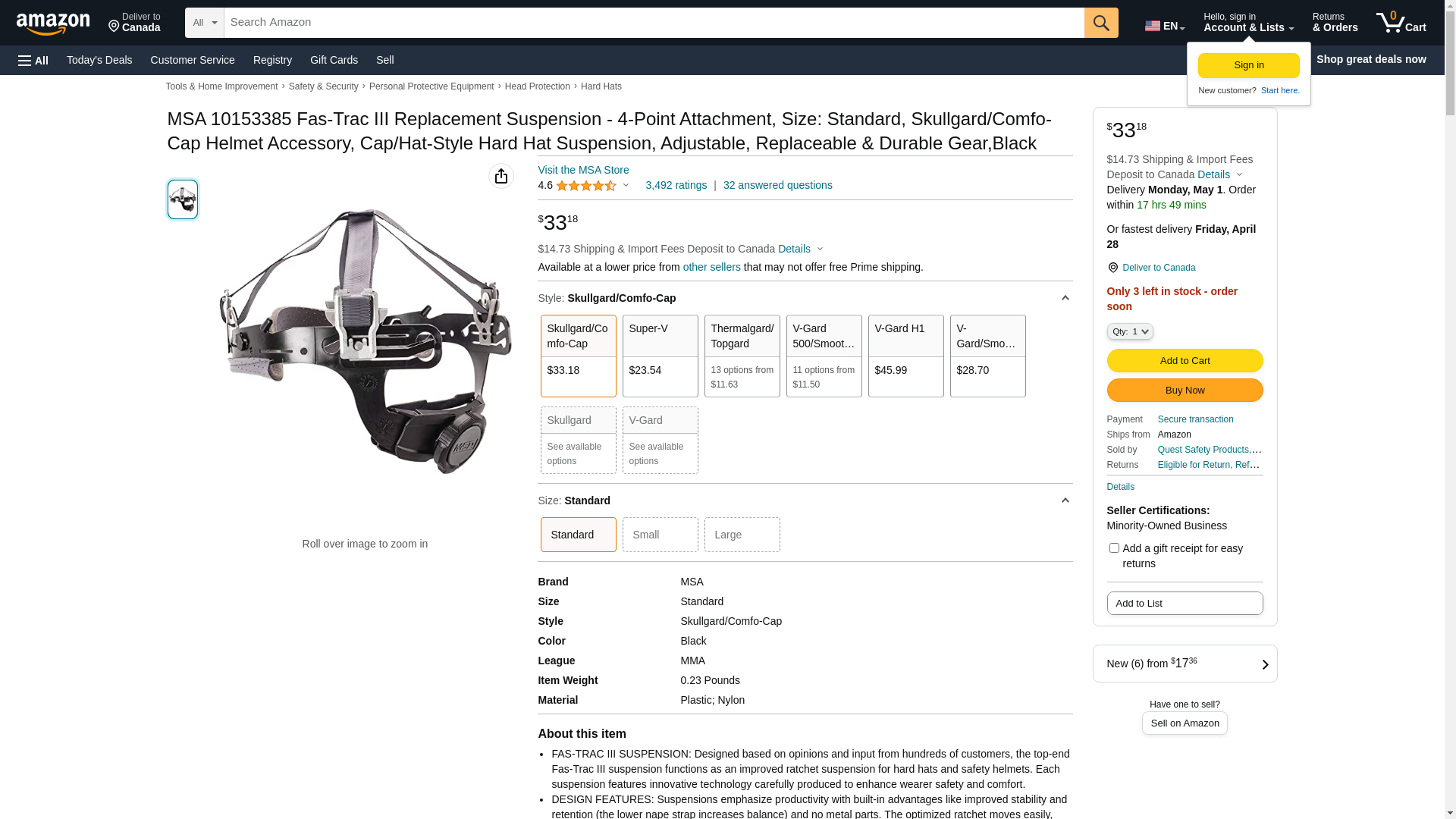 | Safety Equipment Store | MSA-10153385 | 1 | -2 | 1 | 1 @ $20.54 |