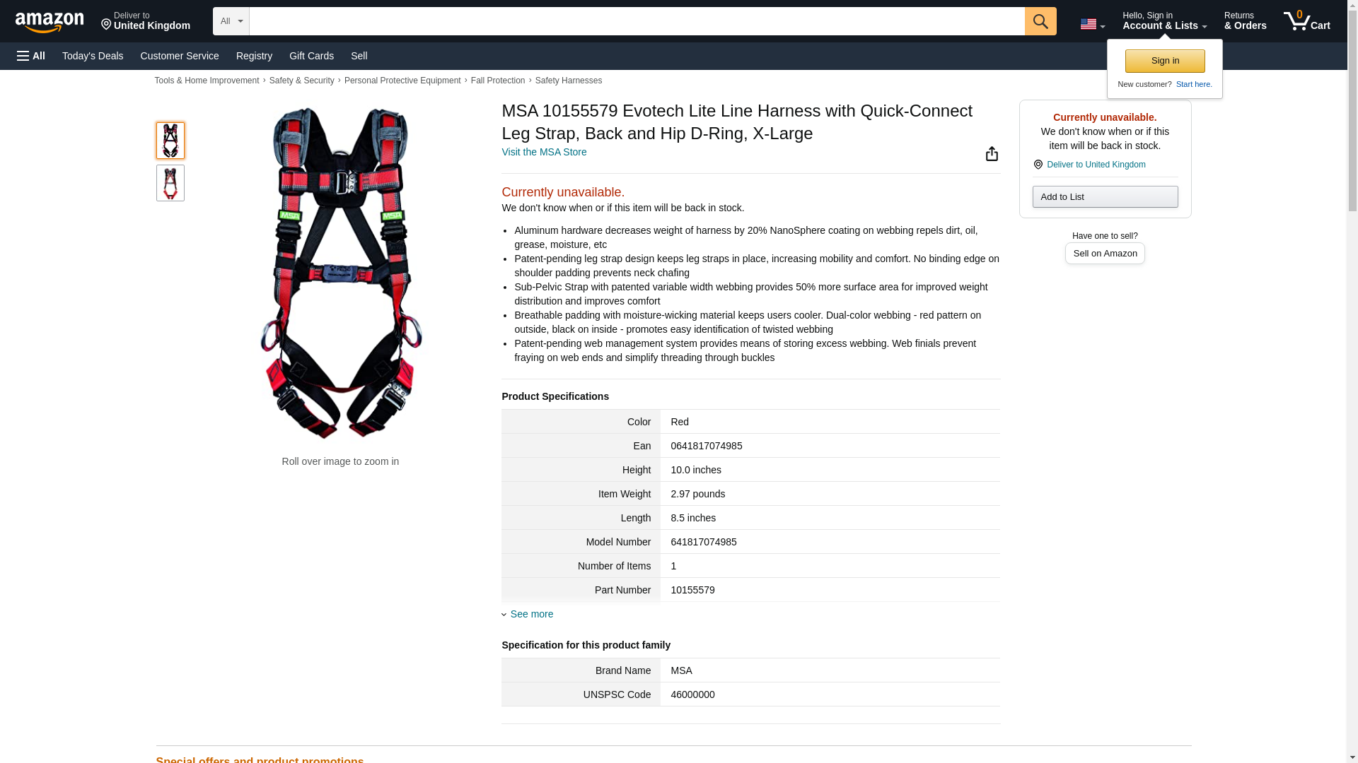 MSA 10155579 Evotech Lite Line Harness, Quick-Connect Leg Strap, Back and Hip D-Ring, X-Large Size