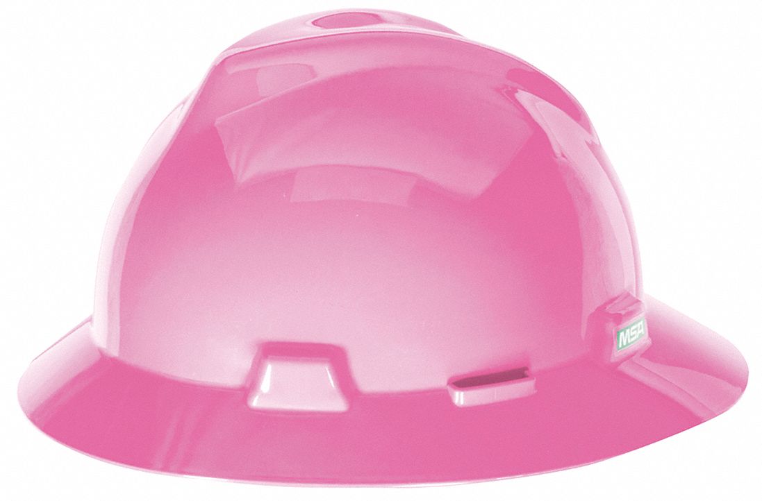 MSA Safety 10156373 V-Gard Slotted Full-Brim Hat, Hot Pink, w/Fas-Trac III Suspension (Pack of 20)