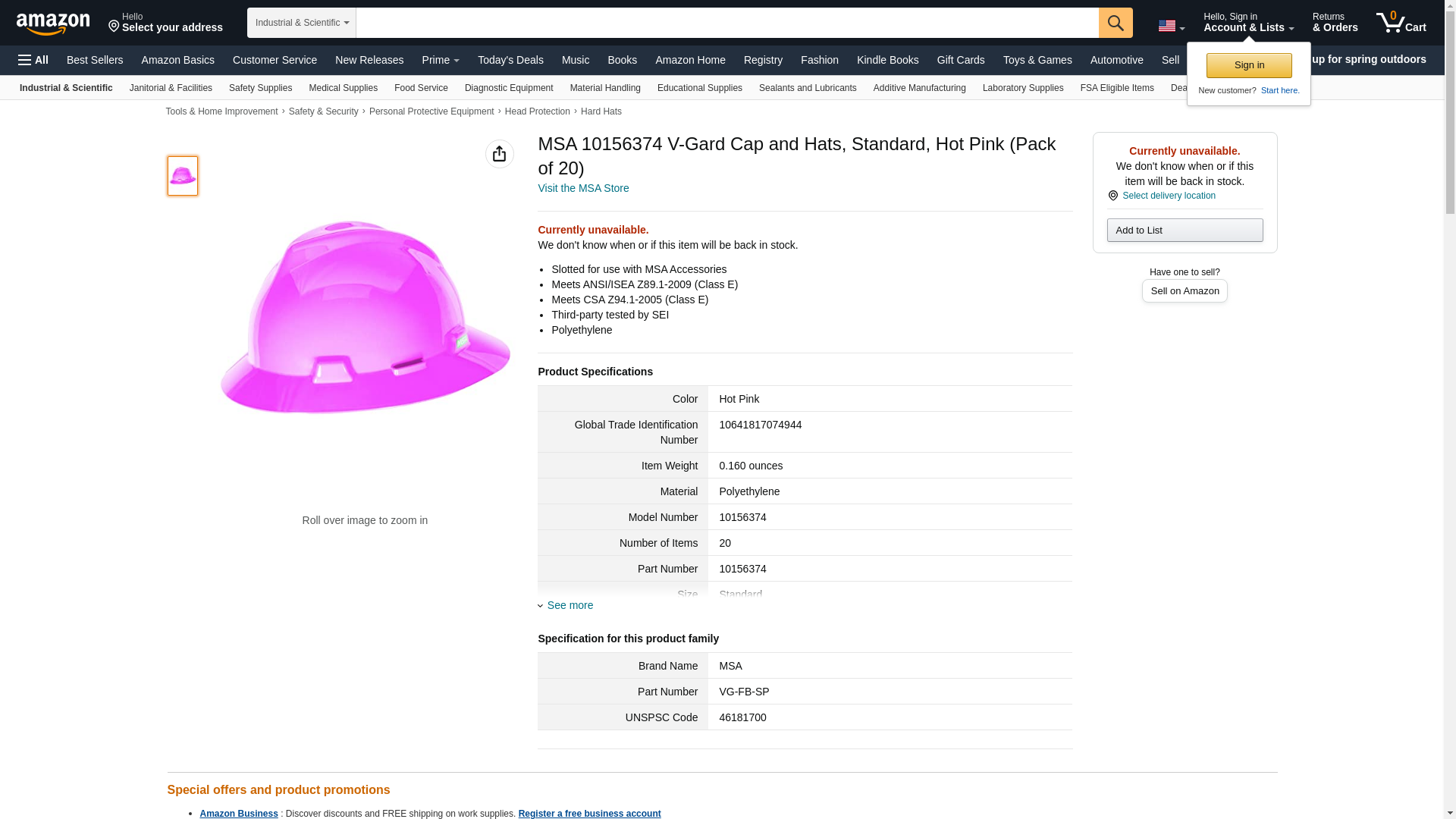 MSA 10156374 V-Gard Cap and Hats, Standard, Hot Pink (Pack of 20)
