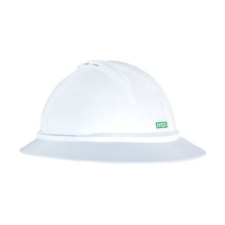 MSA 10167950 V-Gard 500 Full-Brim Hard Hat With 6-Point Fas-Trac III Ratchet Suspension | Polyethylene Shell, Superior Impact Protection, Self Adjusting Crown Straps - Standard Size in White