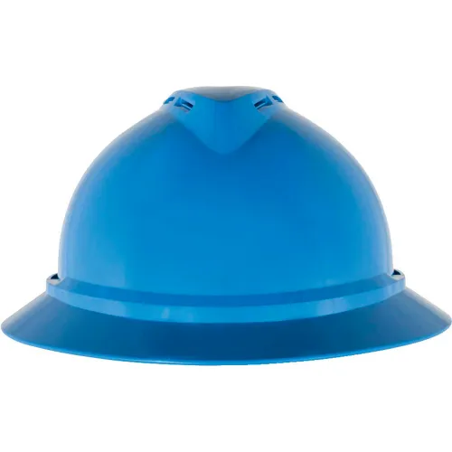 MSA 10167951 V-Gard 500 Full-Brim Hard Hat with 6-Point Fas-Trac III Ratchet Suspension | Polyethylene Shell, Superior Impact Protection, Self Adjusting Crown Straps - Standard Size in Blue