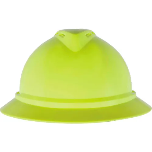 MSA 10168461 V-Gard 500 Full-Brim Hard Hat With 6-Point Fas-Trac III Ratchet Suspension | Polyethylene Shell, Impact Protection, Self Adjusting Crown Straps - Standard Size in Hi-Viz Yellow-Green