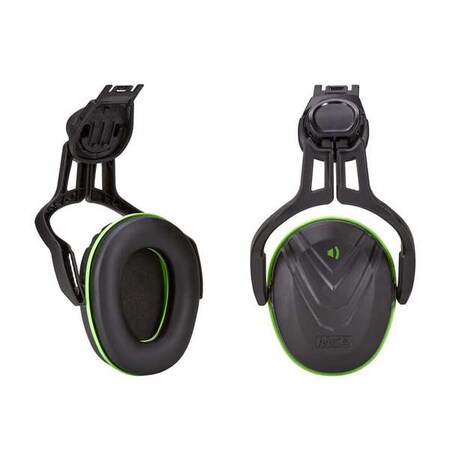MSA 10190356 V-Gard Helmet Ear Defenders - Enhanced Comfort Hearing Protection Capsules with Helmet Mount for V-Gard Cap Style Hard Hats - Black/Green - Low Attenuation SNR: 28 dB