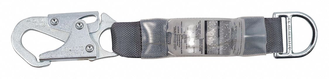 SHOCK-ABSORBING LANYARD, 1 LEG, WEIGHT 150 TO 310 LBS, GREY/BLACK, ALUMINUM HARDWARE