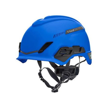 MSA 10194785 H1 V-Gard Helmet With Fas-Trac III Ratchet Suspension | Polyethylene Shell, Superior Impact Protection, Self Adjusting Crown Straps - Standard Size in Blue