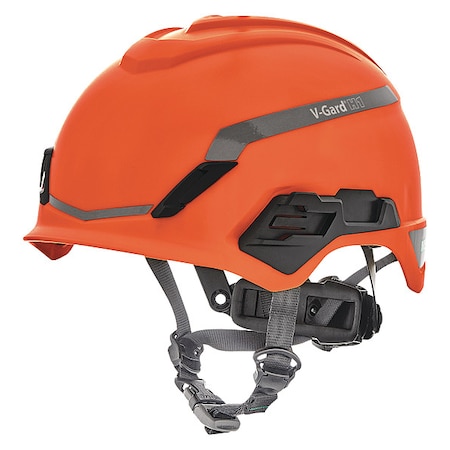 MSA 10194797 H1 V-Gard Helmet With Fas-Trac III Ratchet Suspension | Polyethylene Shell, Superior Impact Protection, Self Adjusting Crown Straps - Standard Size in Orange