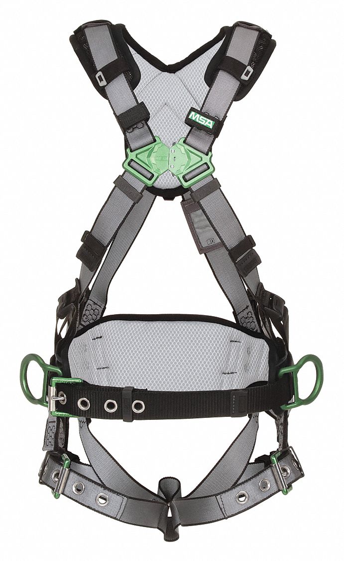 MSA 10195151 V-FIT Construction Harness, Super Extra Large, Back & Hip D-Rings, Tongue Buckle Leg Straps, Shoulder Padding