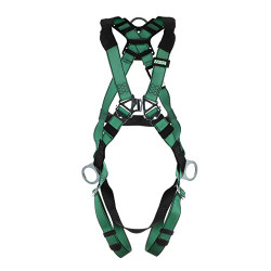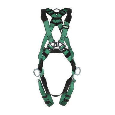 MSA 10197231 V-Form Standard Harness - Size: Extra Large, D-Ring Configuration: Back/Hip, Qwik Fit Leg Straps, Color: Green, Full Body Harness, Durable, Fall Protection