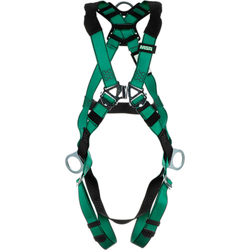 MSA V-FORM™ 10197232 Harness, Back & Hip D-Rings, Qwik-Fit Leg Straps, Super Extra Large<br><br>The V-FORM™ full body safety harness allows you to focus on your job - not your harness. Featuring a patent-pending RaceFORM™ buckle, bulky chest straps are eliminated for a close and comfortable fit. The athletic cut of the V-FORM harness contours to the body improving upper torso movement on the job, while its downward adjusting design allows you to quickly adjust your harness for a fit that lasts throughout the day.<br><br>