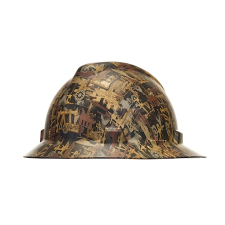 MSA 10204783 Hydro Dip V-Gard Full-Brim Hard Hat With Fas-Trac III Ratchet Suspension | Polyethylene Shell, Self Adjusting Crown Straps - Standard Size in Oilfield Camo