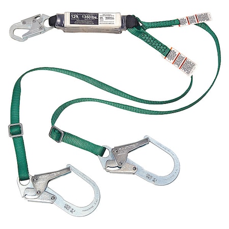 - Shock Absorbing Lanyard,Twin Leg,12 ft.