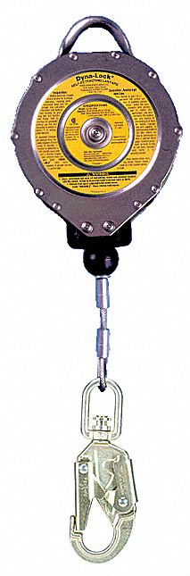 MSA 10006464 Dyna-Lock Self-Retracting Lanyard, 36CS Steel Swivel Snaphook, CSA Z259.2.2 Standard, 95' Long Galvanized Wire Rope