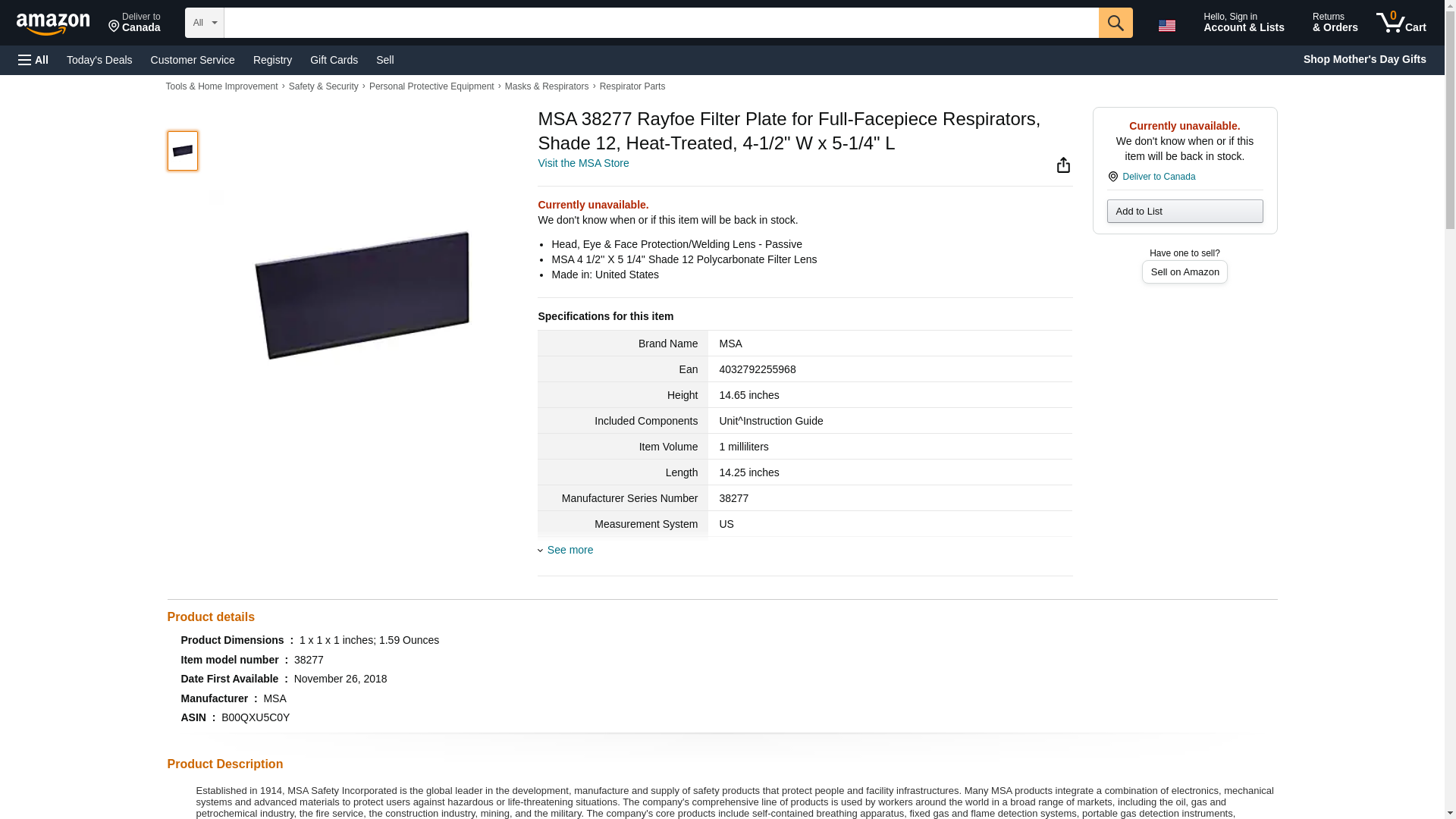 MSA 38277 Rayfoe Filter Plate for Full-Facepiece Respirators, Shade 12, Heat-Treated, 4-1/2" W x 5-1/4" L