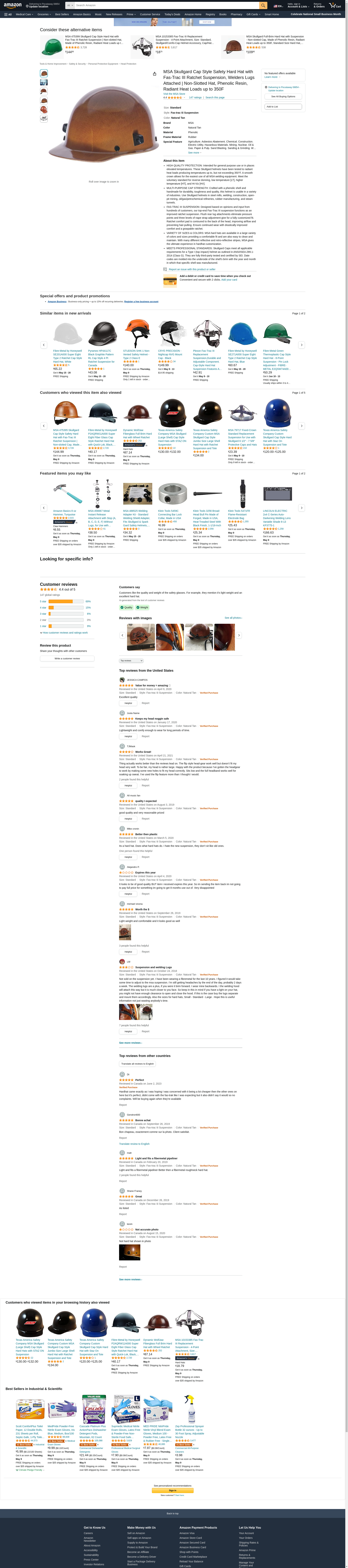 MSA 482002 Skullgard Cap Style Safety Hard Hat with Fas-Trac III Ratchet Suspension, Welders Lugs Attached | Non-slotted Hat, Phenolic Resin, Radiant Heat Loads up to 350F - Standard Size in Tan