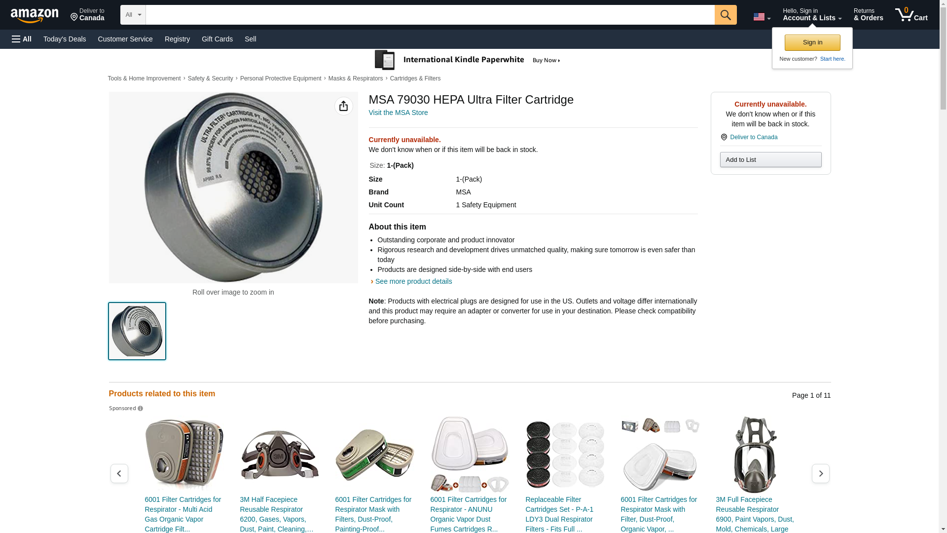 MSA 454-79030 CARTRIDGE MODH ULT FLT-6
