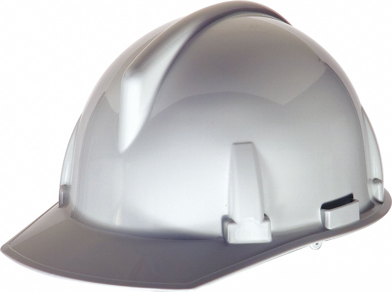 MSA White TopGard Class E Type I Polycarbonate Slotted Hard Cap With Fas-Trac Suspension. Made of durable polycarbonate and featuring a uniridge design, these caps are specialty designed for use by utilities and other industries where head protection with dielectric protection is necessary. Retains limited resistance to top impact or penetration over a wide range of temperatures. Withstands radiant heat loads up to 275 deg F. Available in slotted or non-slotted design in a variety of colors. (Purchase of 2 Each)