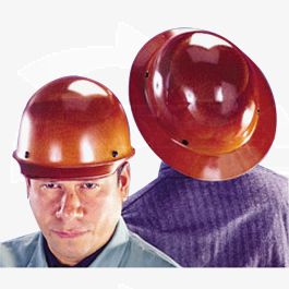MSA 454672 Skullgard Full-Brim Hard Hat with Staz-on Pinlock Suspension | Non-slotted Cap, Made of Phenolic Resin, Radiant Heat Loads up to 350F - Standard Size in Brown