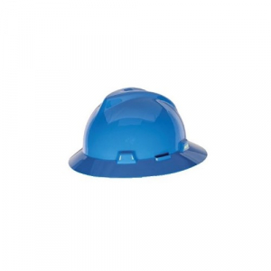 MSA 454732 V-Gard Full-Brim Hard Hat With Staz-on Pinlock Suspension | Polyethylene Shell, Superior Impact Protection, Self Adjusting Crown Straps - Standard Size in Blue