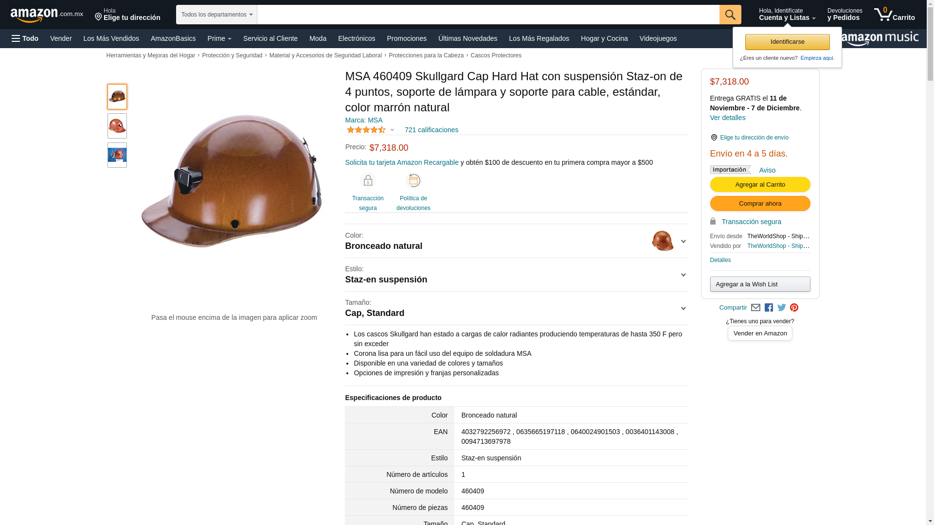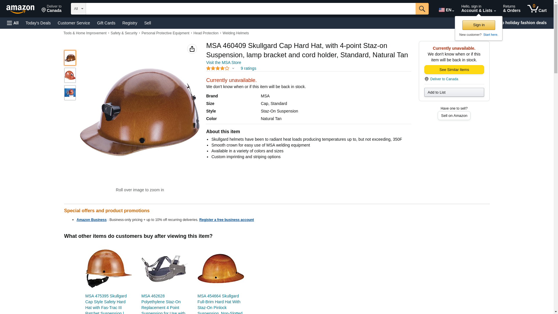 | Safety Equipment Store | MSA-460409 | 1 | -2 | 1 | 1 @ $168.00 |
